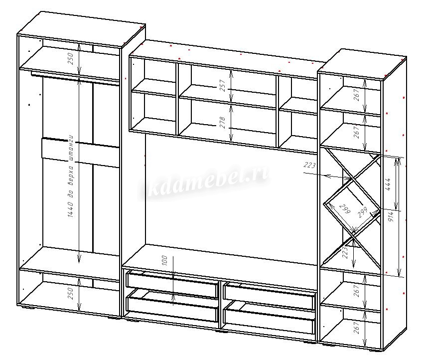 Ниша под ТВ, мм (ш х в):1500х977