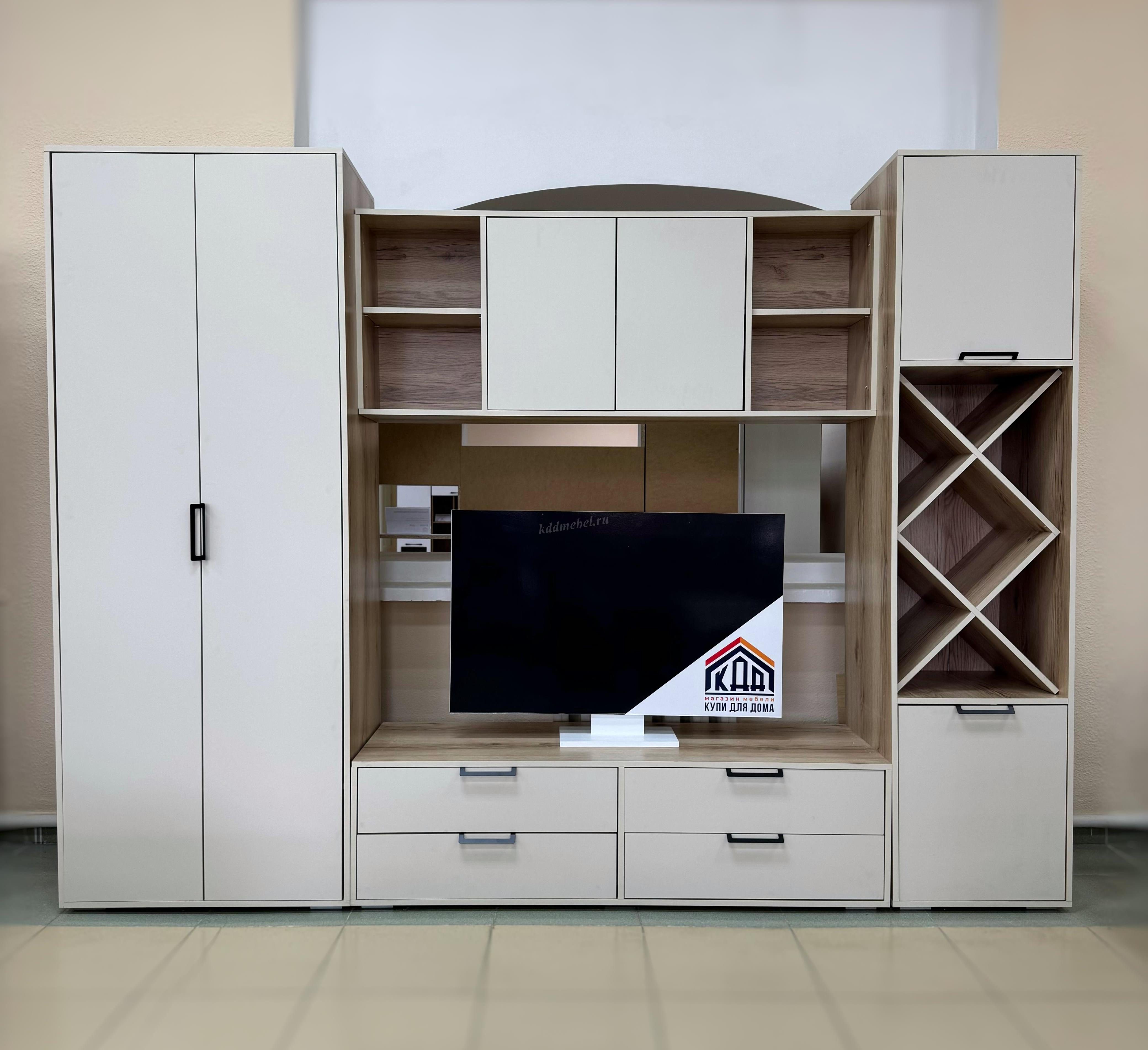 Описание Гостиная Оливия (Дуб делано светлый/Сатин)