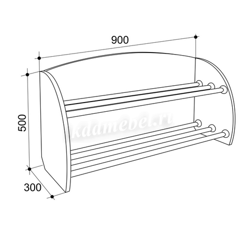 Обувница 90 см шириной подойдет для 8 пар обуви. Она очень проста и в то же время гигиенична и функциональна. Она подойдет и для квартиры, дачи, для офисных и иных помещений. Пыль не будет скапливаться на "полочках" для обуви, обувь на этой Обувнице даже удобно сушить. Обувница выполнена из высококачественной 16-ти миллиметровой плиты ЛДСП. Сочетание простоты, компактности, функциональности и ценовой доступности делает эту Обувницу популярной среди покупателей. К ней часто заказывают Вешалку настенную "Уют", представленную на нашем сайте в трех размерах.