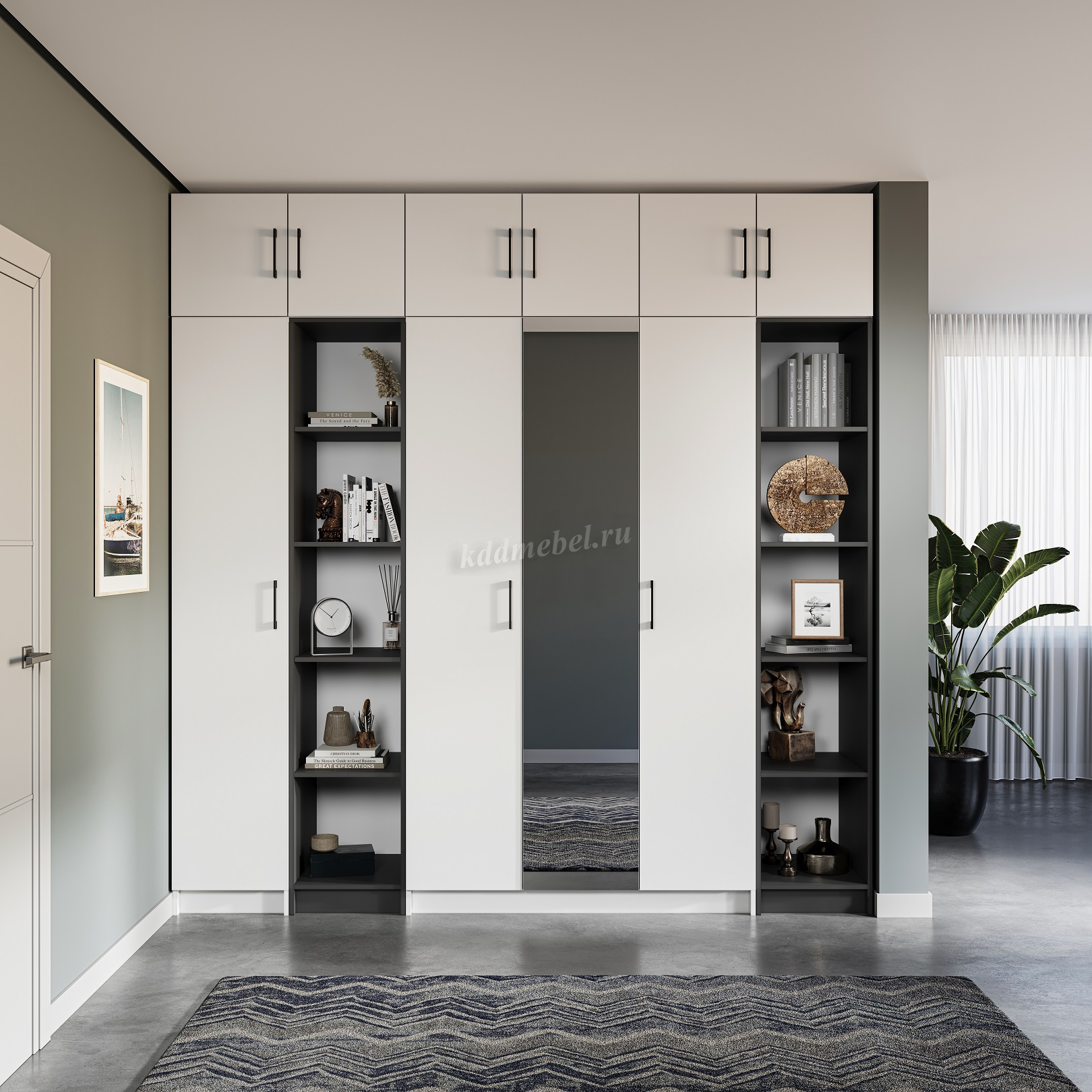 Практичный и надежный комод, изготовленный из прочного ЛДСП высокого качества, оборудован вместительными полками и выдвижными ящиками на роликовых направляющих для удобного хранения вещей по категориям. Нейтральные цвета декора визуально добавляют света и создают уют, а черные матовые ручки завершают композицию. Комод легко вписывается в готовые интерьеры благодаря своему универсальному дизайну и гармонично сочетается со всеми элементами модульной системы Чикаго
