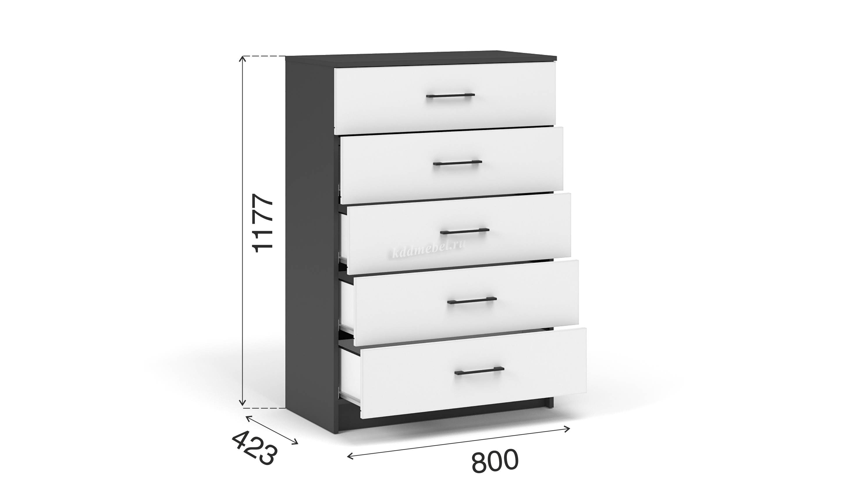 Комод Чикаго 5 ящ (Антрацит/Белый)