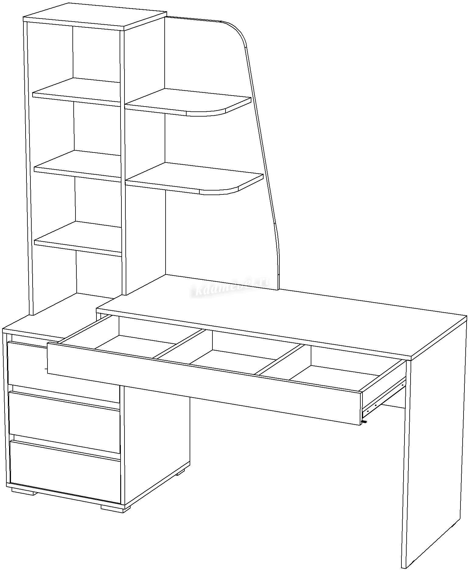 Три ящика в тумбе + Один широкий ящик под столешницей.